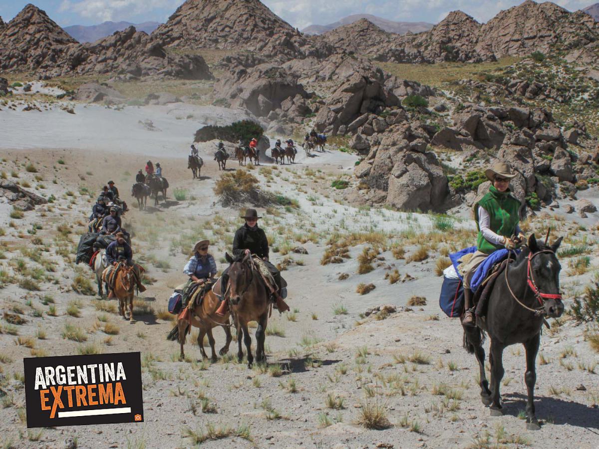 Cabalgar paulatinamente por una cordillera perpleja e infinita, rica e imponente, es una experiencia que generalmente permanece en los fondos más recónditos de nuestras retinas por largo tiempo. Los grandes valles cubiertos de verdes intensos que desbordan las vegas, los pasos fronterizos cubiertos de arena y robustos manchones de nieve, las caudalosas caídas de agua que se descuelgan desde los desfiladeros abruptos y ocultos…Un sinfín de razones que se unen a la explicación de una aventura para todos. Días de ascenso y descenso, días más largos, días que se alcanzan pasos elevados casi en el límite con Chile. Días de descanso junto a una laguna o dentro de unas termas únicas en el mundo. El comienzo y la finalización se dan en la ciudad de Malargue. La cabalgata parte y finaliza en el pequeño poblado de Las Loicas, en plena cordillera del sur mendocino, un rincón colmado de magia indescriptible.