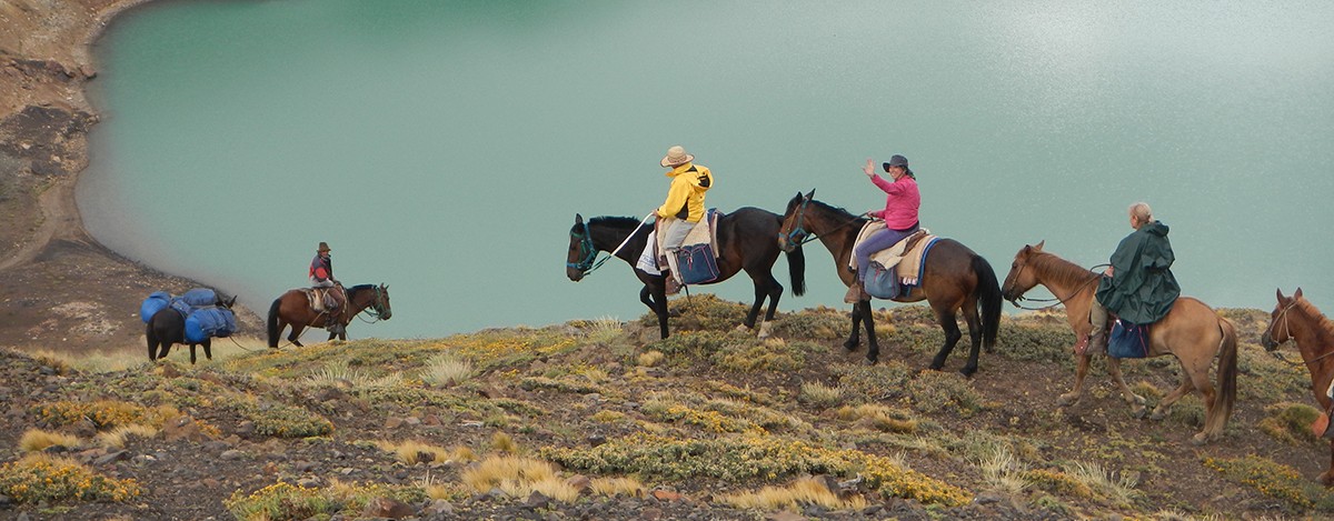 Antes de partir, Débora nos instruye sobre las numerosas razas o pelajes de los caballos. Sainos (marrón con crines negras), rosillos (clarito), alazanes (todo marrón), tordillo (blanco), doradillo, picazzo (bien negro), tobianos y otros. Cada uno de estos seres representa un papel determinante en cada uno de nosotros, no solo porque funcionan gráficamente como nuestro único transporte, sino porque generan, a lo largo de los días, un vínculo emocional-afectivo realmente conmovedor. Pareciera ser que no descansan nunca. Durante el día entregan todo el vigor para trepar y descender cada ladera desbordada de arena volcánica con el exceso de equipaje que representa cada cuerpo nuestro. Por las noches se los oye pastar indefinidamente como si nunca pudiesen dormir. Las mulas son un capítulo aparte. Cargan todo el equipo entre carpas, bolsas de dormir, ollas, calderos, comida para una semana, parrilla, gazebo, mesas con sillas y hasta una camilla rígida que se lleva por precaución. Nuestro equipo personal, compuesto principalmente por ropa, va en las alforjas que cada uno lleva en su caballo.